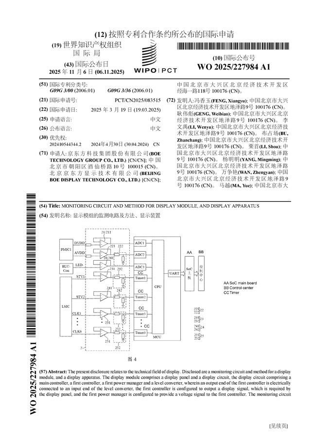 证券之星音书,凭据企查查数据泄露京东方A(000725)公布了一项海外专利恳求,专利名为“泄露模组的监测电路及智商、泄露装配”,专利恳求号为PCT/CN2025/083515,海外公布日为2025年11月6日。