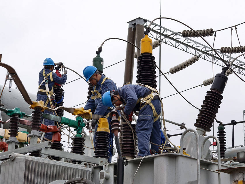 11月22日,云南曲靖供电局变电修试所职责主说念主员完成110千伏玉林变电站1号主变B相套管更换职责,普及冬季供电的可靠性力。张赛摄