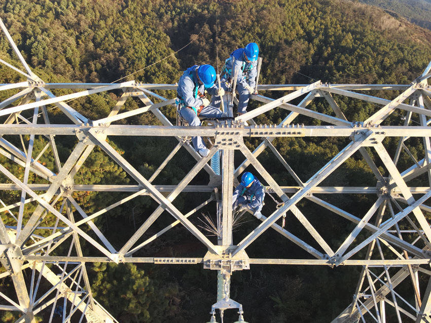 11月25日,云南曲靖供电局输电料理所职责主说念主员开展防鸟刺安装职责,确保输电清亮安全安妥驱动,为冬季保供电打下坚实基础。蔡祎摄
