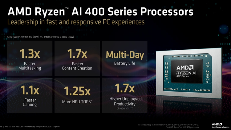 针抵滥用级市集,AMD连接深耕AI PC,将会推出全新的锐龙AI 400系列处理器,看成在Zen 5架构的优化版,其频率最高擢升到5.2GHz,XDNA 2 NPU的AI算力擢升到60TOPS,GPU的频率最高擢升到3.1GHz,还不错原生撑持8533MT/s的内存,不错说这几项参数进化都是精确踩中AI推理的痛点。