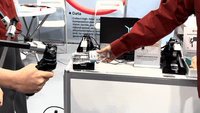 许多东谈主对机械外骨骼的印象都来自于《流浪地球2》,但实质上机械外骨骼不仅能补助行走。来自中国香港科技大学的机器东谈主公司戴盟机器东谈主在CES展会现场展示了其全球首款力/触觉反馈遥操作数据采集系统DM-EXton2。它不错将战争力、挤压等信息及时反馈给操作家,使其在进行易碎物夹取、精密插拔、柔性抓取等精细任务时,更容易主理力度范围,从而擢升操作到手率与高质料数据采集着力。