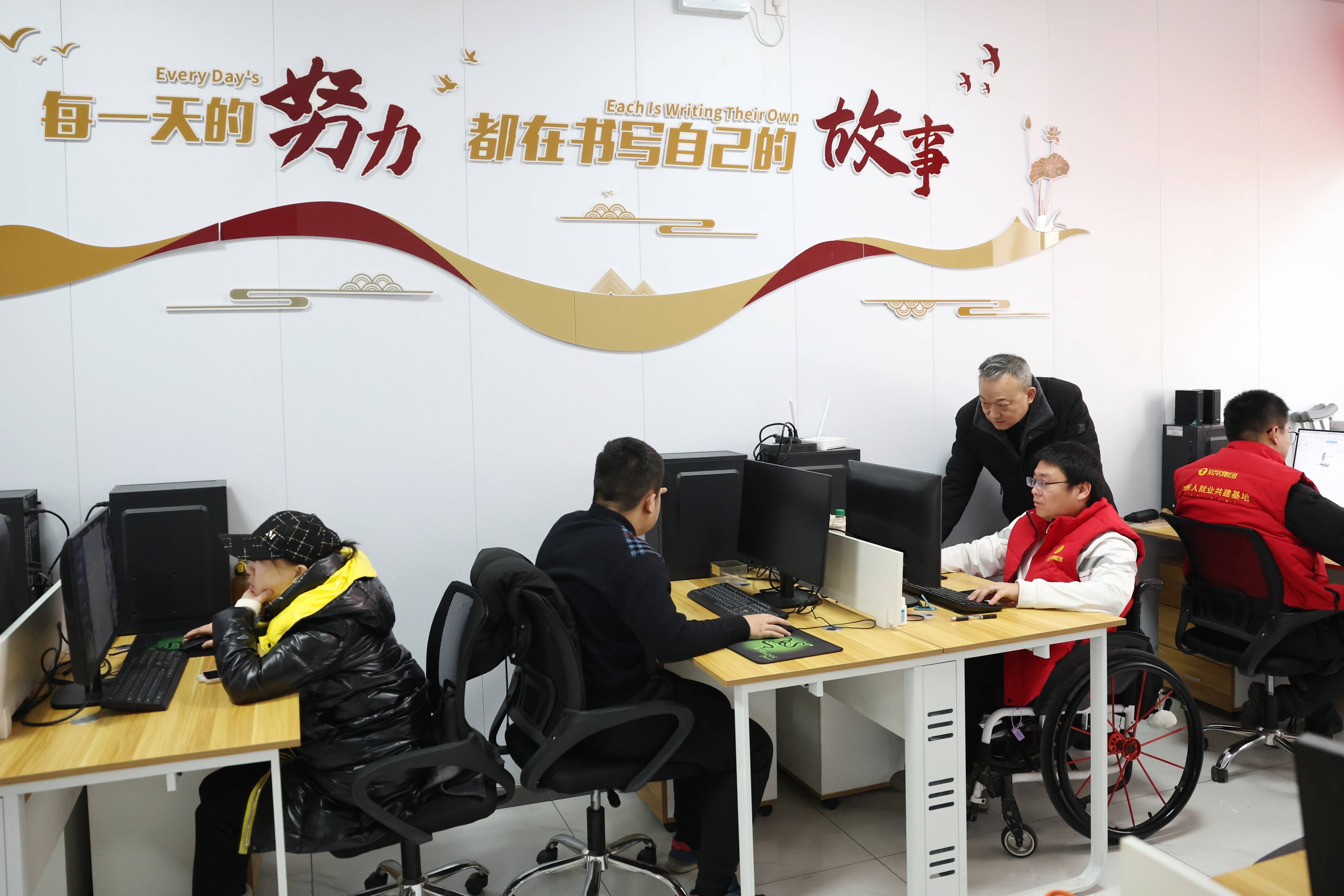 腊月以来,甘肃省兰州市心连心社会职责服务中心一派冗忙。这内部积不大,却很暄和,十几名职工欢欣地坐在电脑前,专注地浏览屏幕,鼠标点击声“咔嗒”作响。一旁的轮椅和手杖揭示着他们非常的身份。