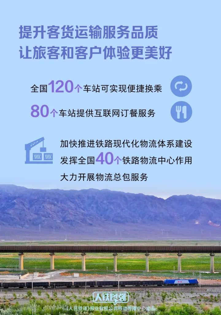 五是普及客货运输工作品性,让游客和客户体验更好意思好。捏续优化铁路12306工作功能,普及游客购票体验,扩大计次票、依期票、旅游套票等新式票制居品应用限制,对实行市集化票价机制的动车组列车推出更为生动的票价扣头,最低4折,让游客享受更多优惠票价。优化站车工作,天下120个车站可达成苟简换乘,80个车站提供互联网订餐工作,铁路畅行码心事扫数动车组列车,探索适老化新工作新举措,捏续普及列车餐饮工作品性。开好公益性“慢火车”,为牢固拓展脱贫攻坚效果、鼓舞乡村全面振兴提供提拔。开好 “熊猫专列”“天山号”“京和号”等杰作旅游列车,打造消耗新场景,助力旅游经济发展。久了铁路货运改换立异,加速鼓舞铁路当代物流体系开垦,发扬天下40个铁路物流中心作用,浪漫开展物流总包工作,积极实施物流金融工作,优化95306货运平台功能,普及工作质料,发展多式联运,有用裁减社会物流资本。